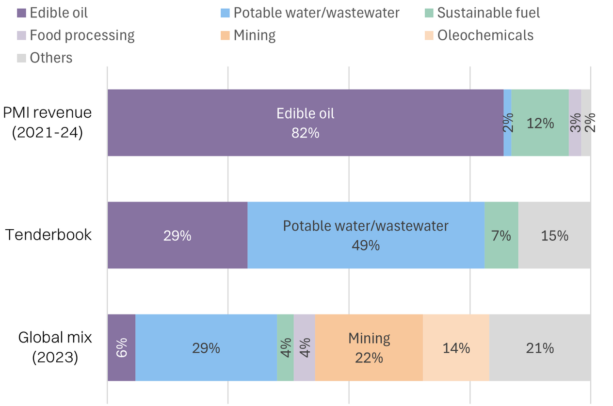 PMI’s segmental focus on edible oils is also not reflective of the broader market demand for said filters, given it is only ~6% of total filter applications (2023) but 82% of PMI’s historic revenue mix. This further underscores the importance of PMI’s diversification into other end-segments.