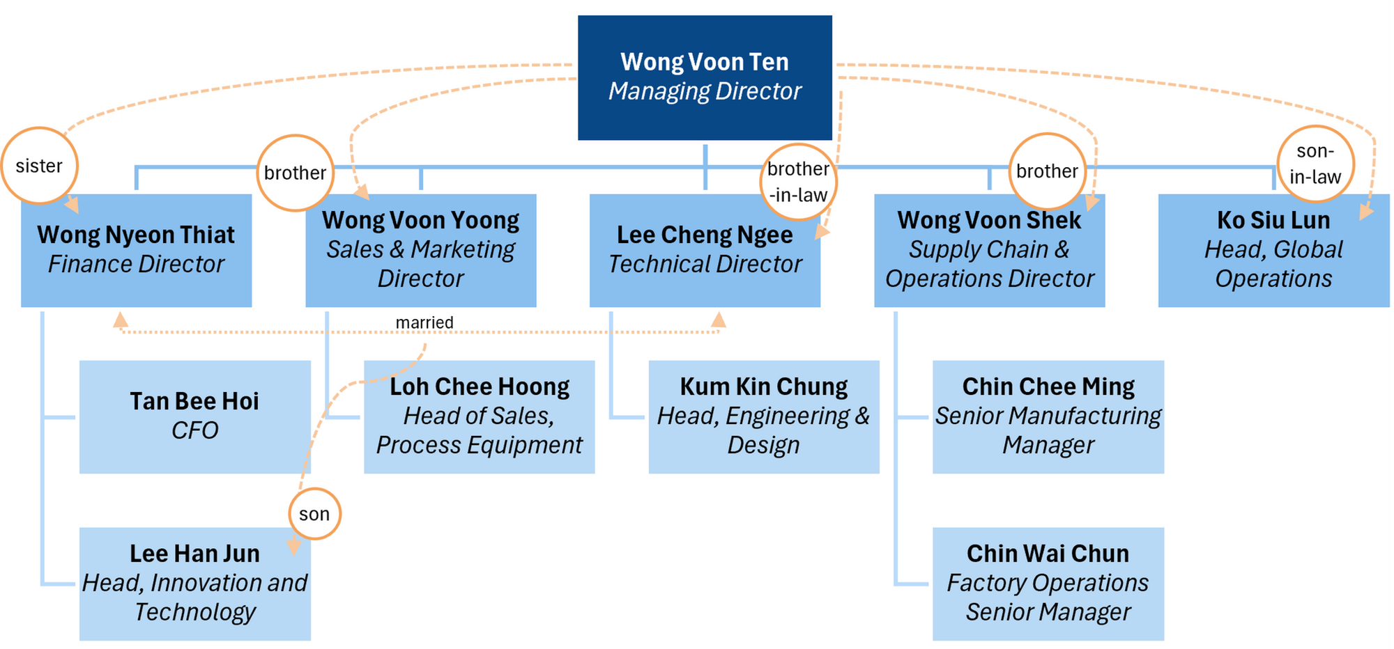 Wong Voon Ten’s son-in-law, Ko Siu Lun is the Head of Global Operations along with nephew Lee Han Jun (son of Lee Cheng Ngee & Wong Nyeon Thiat) is the Head of Innovation & Technology.