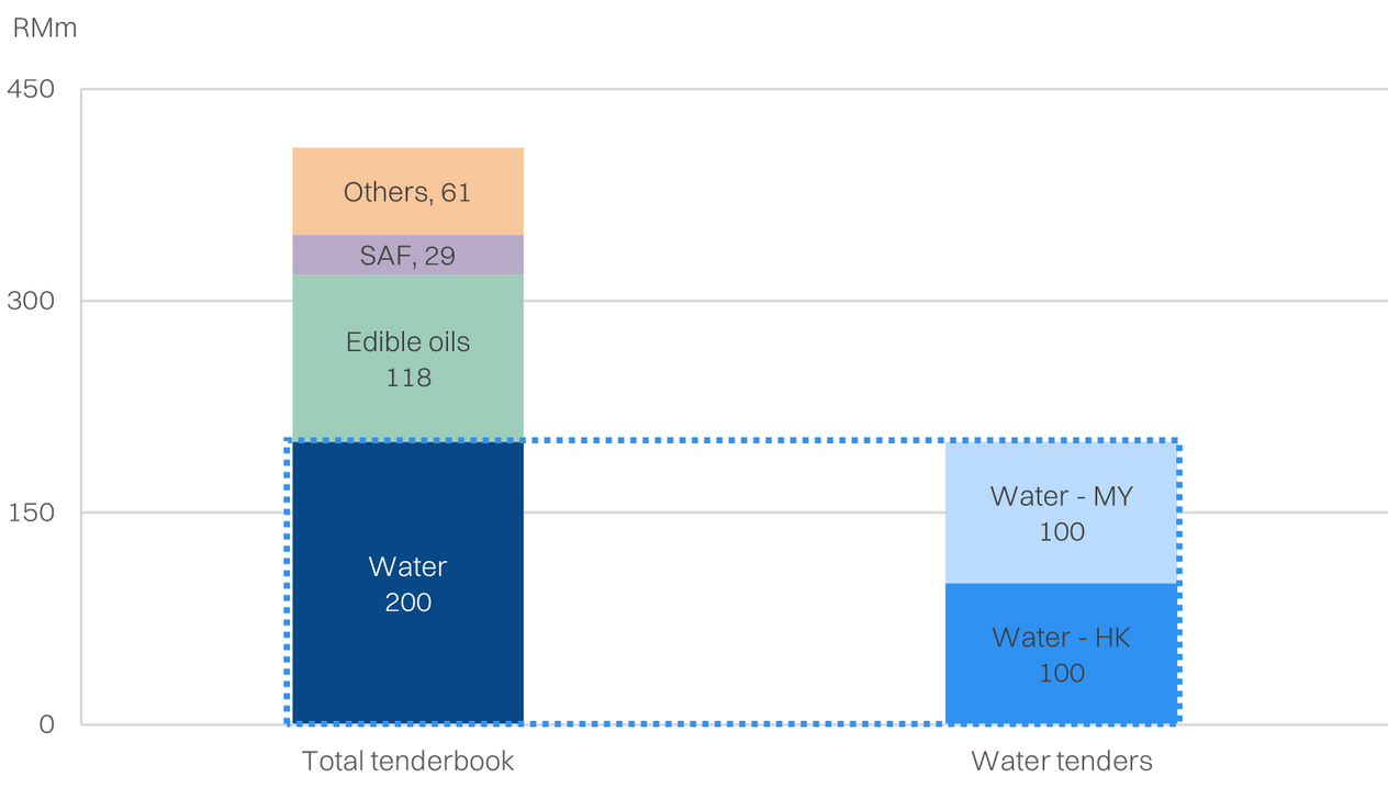 Roughly half the tenderbook (RM200m) pertains to water projects, of which half is