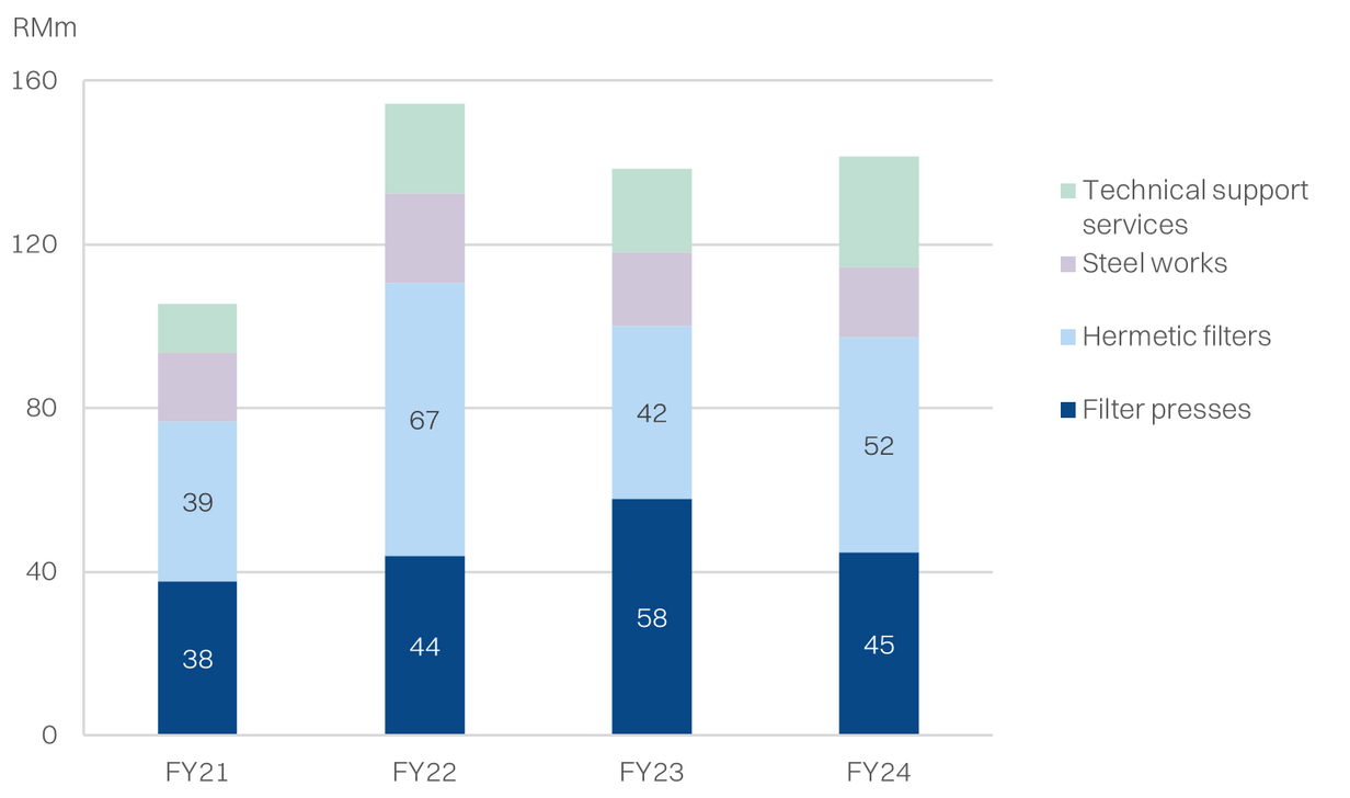 The key driver for growth in our assumptions arises from the diversification into water projects - roughly RM100m worth over the next 3-4 years, from Malaysia. The application for filters in a water treatment plant is for solid-liquid separation of the sludge waste that is a by-product of the primary water treatment process. In short, it is a waste management application.